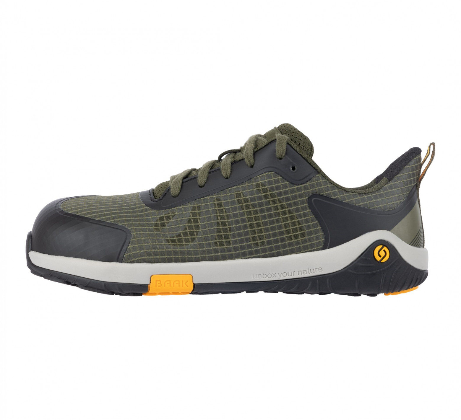 Primer calzado de seguridad con elevación del talón 0 y puntera ancha.