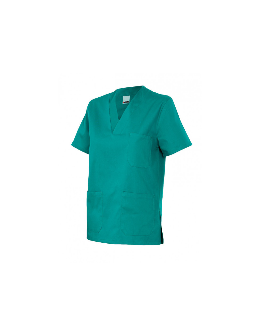 Camisola pijama de manga corta con escote en pico, tres bolsillos de parche y aberturas en los laterales.
