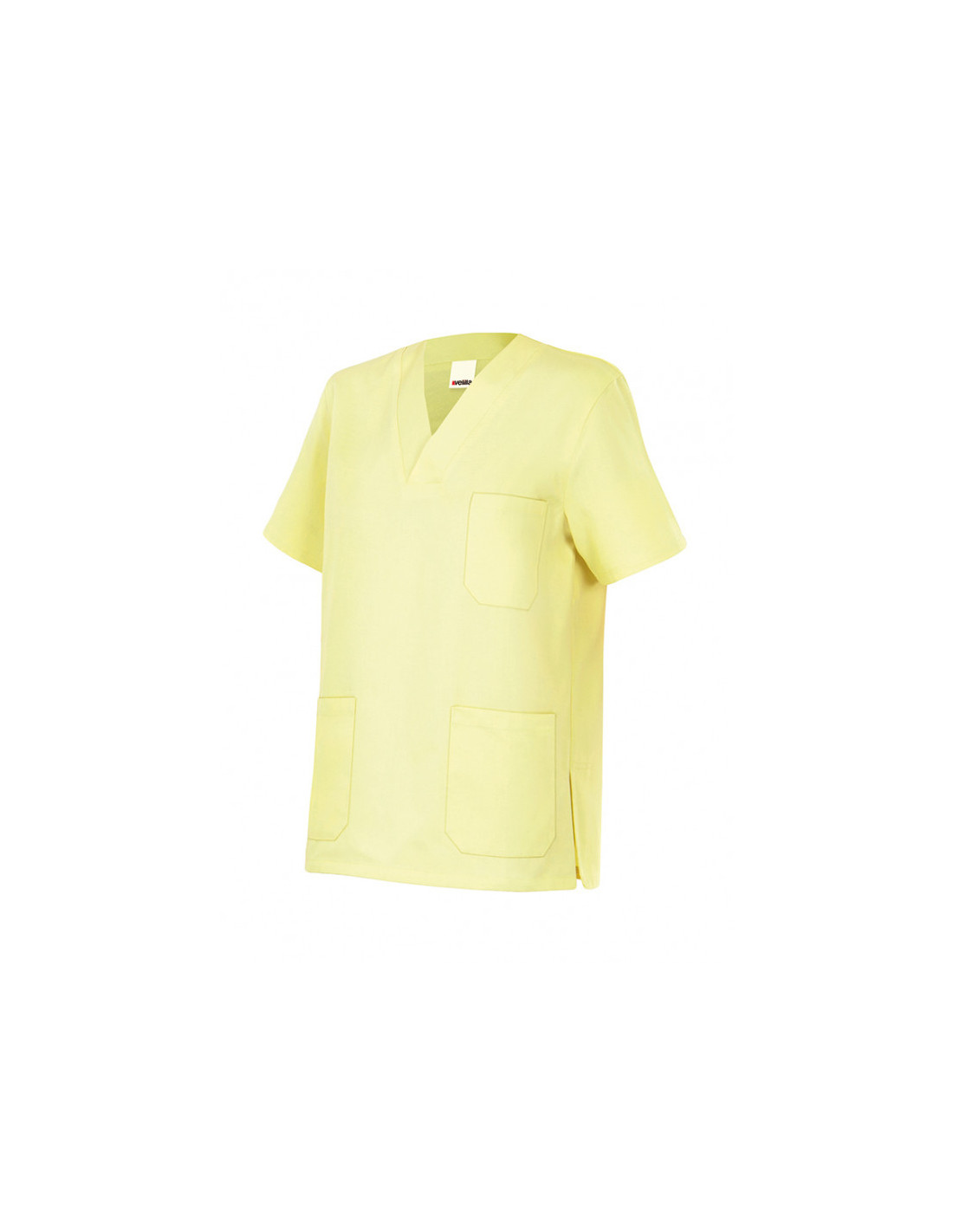 Camisola pijama de manga corta con escote en pico, tres bolsillos de parche y aberturas en los laterales.