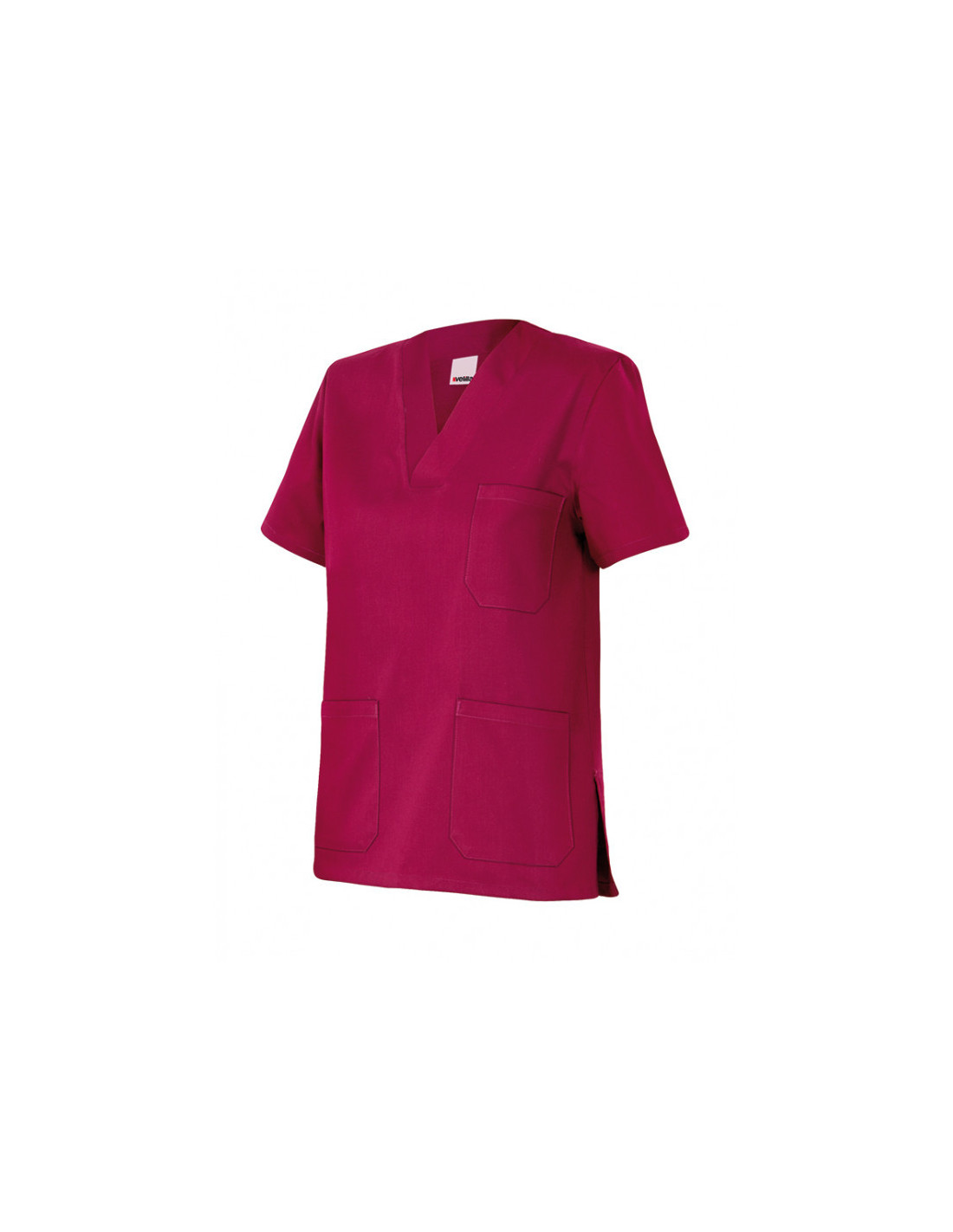 Camisola pijama de manga corta con escote en pico, tres bolsillos de parche y aberturas en los laterales.