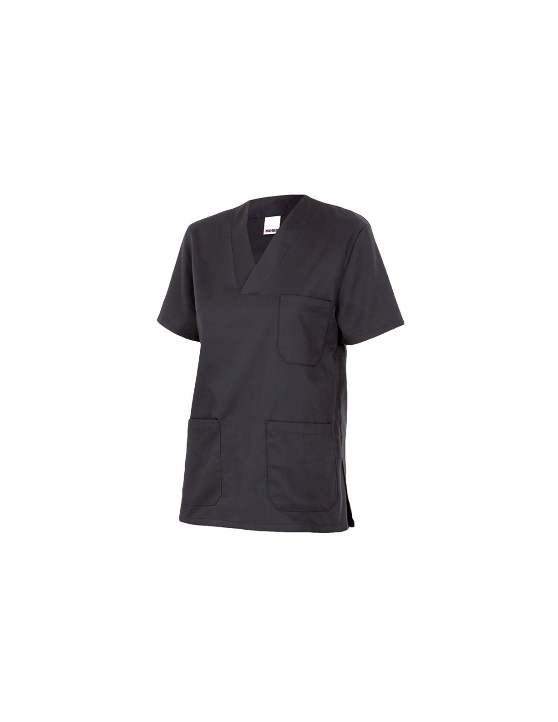 Camisola pijama de manga corta con escote en pico, tres bolsillos de parche y aberturas en los laterales.